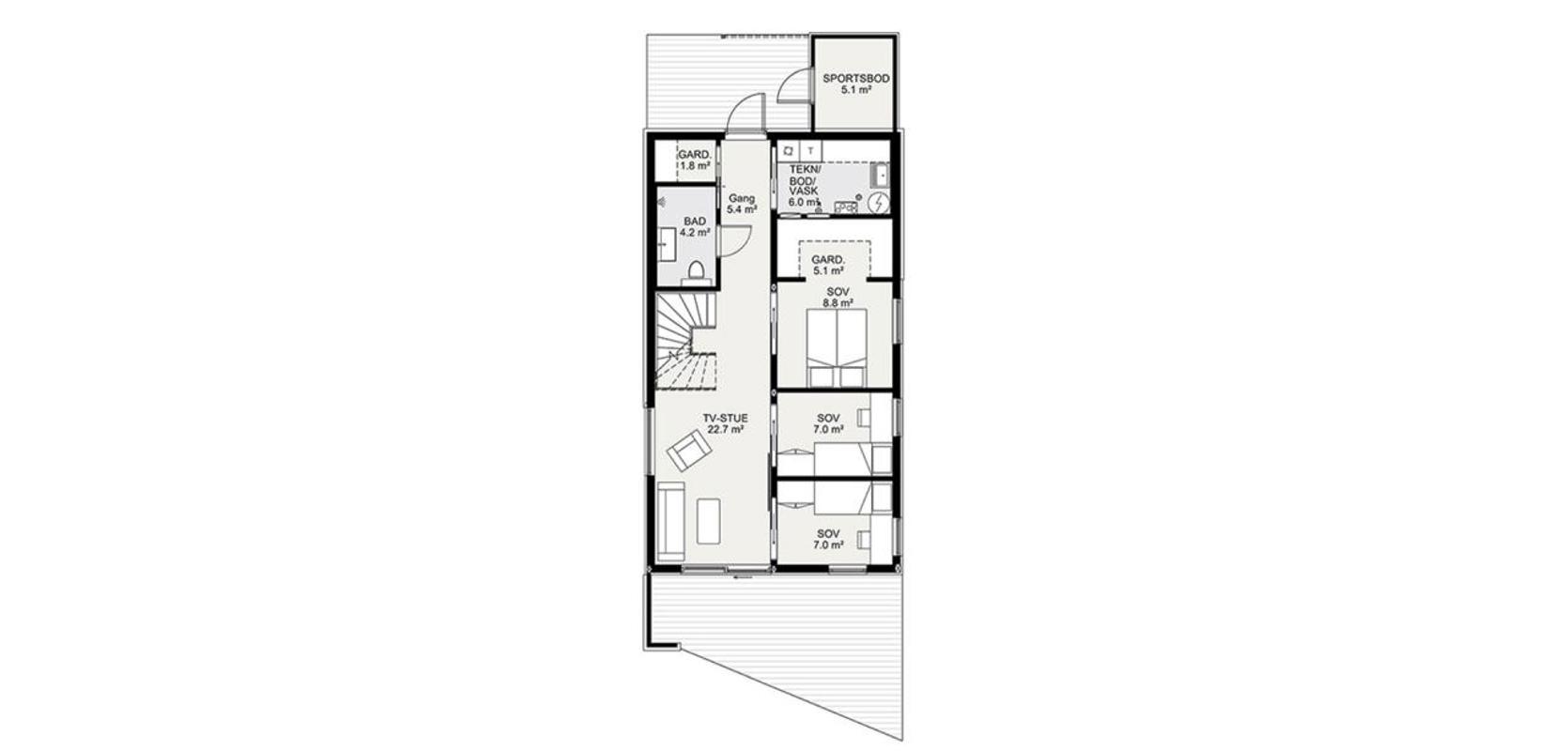 Huset er i stor grad mye lik den opprinnelige modellen Alta for skrå tomt.