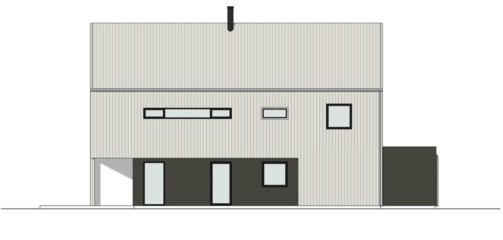Denne versjonen av Alta har fått et stilig overbygd inngangsparti, med en praktisk sportsbod rett ved inngangsdøren. Der kan man enkelt sette fra seg barnevogn, sparkesykler, akebrett og andre ting en aktiv familie har, men ikke trenger å ha med inn i huset. Når du kommer inn har du garderobe og vaskerom rett innenfor døren. Alle våte klær kan gå rett til tørk og vasking. Du har også et bad i gangen. Det er tre soverom i første etasje, hvorav det største har et romslig walk-in-closet. Det er også en TV-stue i denne etasjen, som har dør ut mot den overbygde plattingen og hagen. På grunn av den ene veggen som går ned fra fasaden her, så får man en lun og skjermet uteplass.