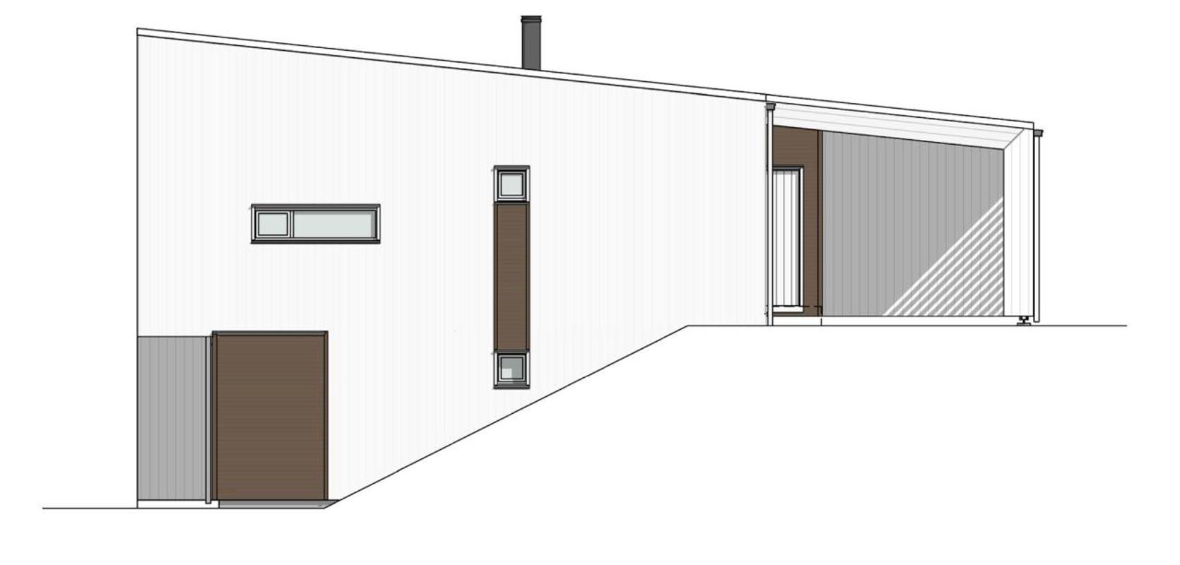 På grunn av den skrå tomten ligger adkomsten til huset på øvre plan, med en stor overbygget carport og sportsbod som skaper et flott inngangsparti og tilknytning til huset. Inne i huset finner du alle nødvendige hovedfunksjoner på ett plan, inkludert stue, kjøkken, bad og soverom. Det store fellesrommet, som kombinerer både kjøkken og stue, har et flott hjørnevindu og store vindusflater som gir mye lys og karakter. Du har også tilgang til en lang balkong fra stuen gjennom en skyvedør i glass som skaper en fin åpenhet på varme dager.