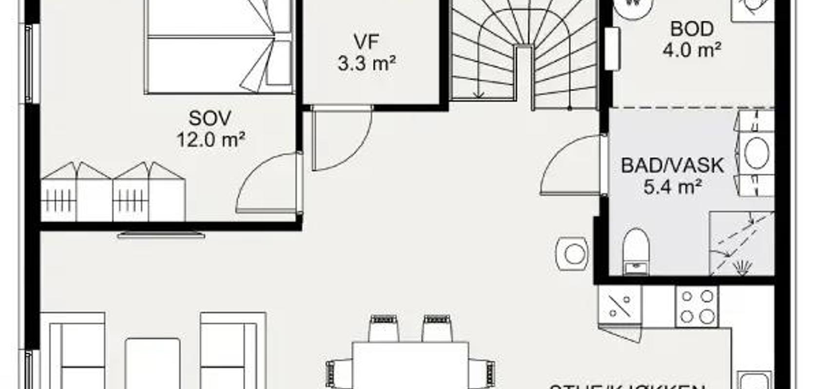 Med sine fire soverom og praktiske planløsning er dette en perfekt bolig for en småbarnsfamilie. Og med alle hovedfunksjoner på ett plan, kan dette være din familiebolig for livet.